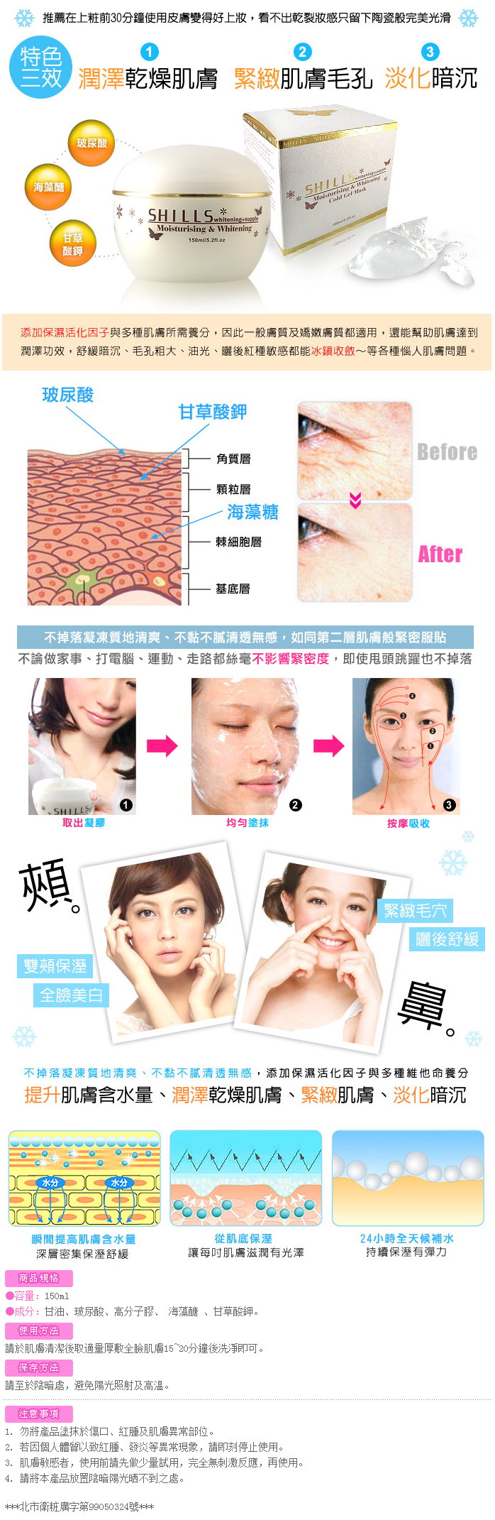 Description : SHILLS Whitening +Supple Moisturising & Whitening Cold Gel Mask 150ml