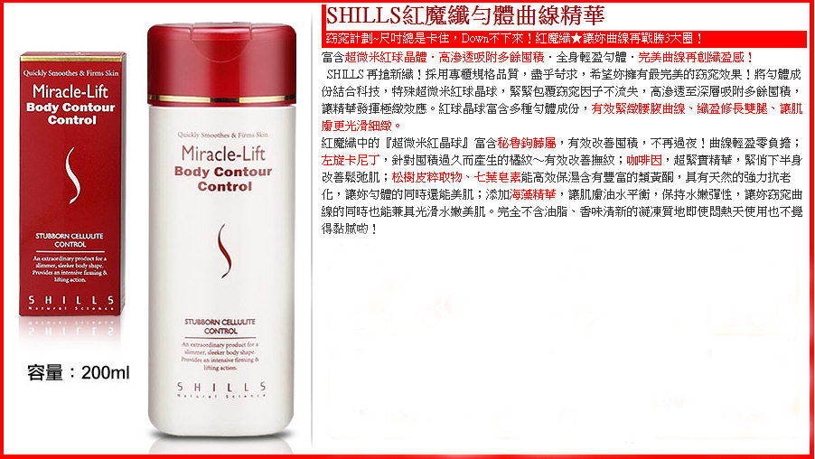 Description : SHILLS Miracle Lift Body Contour Control Essence~200ml