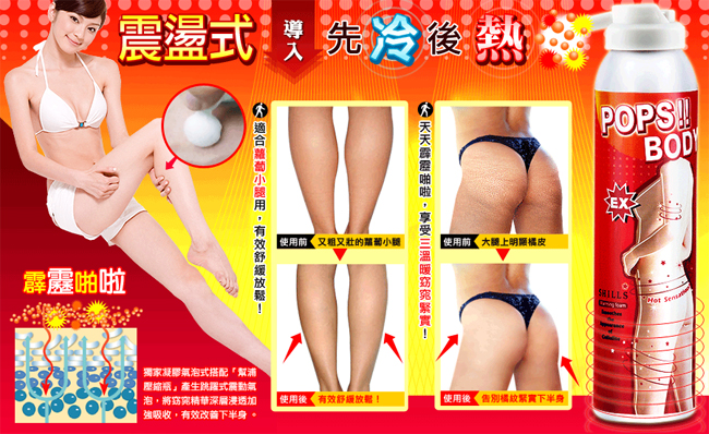 3 times slimming effects! 1st: Cool bubble vibration to massage skin. 2nd: Hot sensation to promote blood circulation and burn excess cellulite. 3rd: Warm down effects to relax skin and muscles. The perfect lower body shaper. Revolutionary HOT BUBBLEs vibrates and penetrates deep into skin layers to promote blood circulation and burns excess fats. If you like to eat and hates exercise? You may have some excess cellulite accumulated around the buttock and thighs. If nothing is done over the period, it accumulates into orange peel skin and causes adipose beads. Our exclusive bubble gel produces unique shaking bubbles delivering into deep skin. With triple firming ingredients of L-Carnitine, Polypeptide and Caffeine, it effectively promotes cellulite reduction! Ingredients:Aqua, Sodium PCA, Yeast Extract, Hydroxypropyl guar, Beta-Glucan Xylitol, Xylitylpolyglucosides, Allantoin, L-Carnitine, Citrimax Extract Horse Chestnut Extract, Ginger Extract, Citrus Aurantium amara extract Caffeine, Panax ginseng extract, Tripeptide, Lecithin, Pentylene Glycol Methyparaben, Propyparaben. Usage:After shower, shake the bottle and spray proper amount to required areas. Massage in a circular action until fully absorbed. There is no need to rinse off.Note: You may experience some discomforts due to the heat sensations. If necessary wash off with cold water. (Do not rinse affected area with hot or warm water) This burning effect would last between 30 – 45 mins.