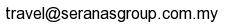 Company Particular| Company : | Seranas Travel & Tours Sdn. Bhd. | | Fax : | +603 3345 2680 | | Address : | 7G, Jalan Pulau Pinang 3, New Business Centre, 41050 Klang, Selangor D.E | | Email : |  | | Website : | http://seranasgroup.com.my |