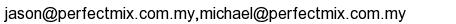 Company Particular| Company : | Perfect Mix Portfolio Sdn Bhd | | Fax : | 607-333 8988 | | Address : | 94 Jalan Harimau Tarum,Century Garden, 80250 Johor Bahru, Johor, Malaysia. | | Email : |  | | Website : | http://perfectmix.com.my |